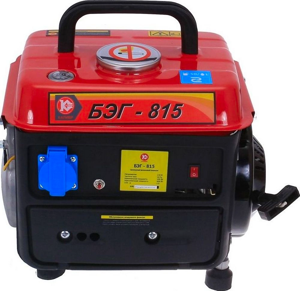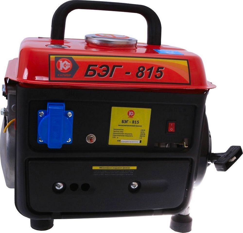 Бензиновый генератор КАЛИБР БЭГ-815 - компактное и достаточно мощное устройство с двигателем внутреннего сгорания, предназначенное для автономного снабжения бытовых электроприборов переменным током