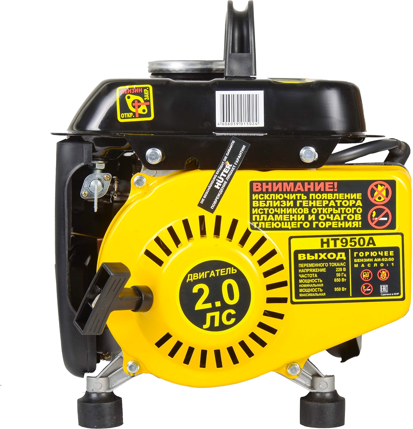 Бензиновый генератор Huter HT950A - самый компактный в линейке бренда портативный источник питания переменного тока, разработанный для автономного энергоснабжения.