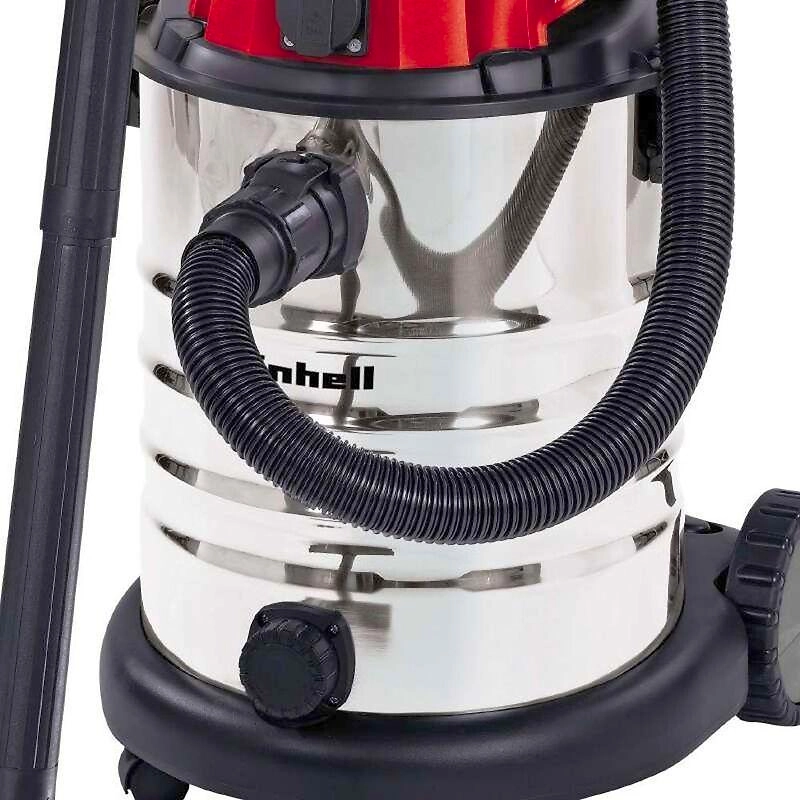 Пылесос Einhell используется для сбора сухого и влажного мусора. Стальной бак устойчив к механическим повреждениям и образованию коррозии. Благодаря дополнительному пенофильтру двигатель защищен от загрязнений во время всасывания жидкостей. Все аксессуары можно хранить непосредственно на самом пылесосе, поэтому они всегда будут под рукой.