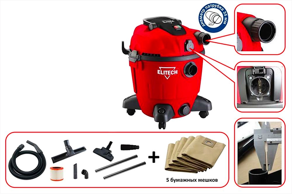 Профессиональный пылесос Elitech ПС 1235А 1200 Вт поможет очистить помещение от бытовой, строительной пыли, убрать стружки, опилки, а также влажный мусор. Подходит для использования в мастерских и на стройплощадках.