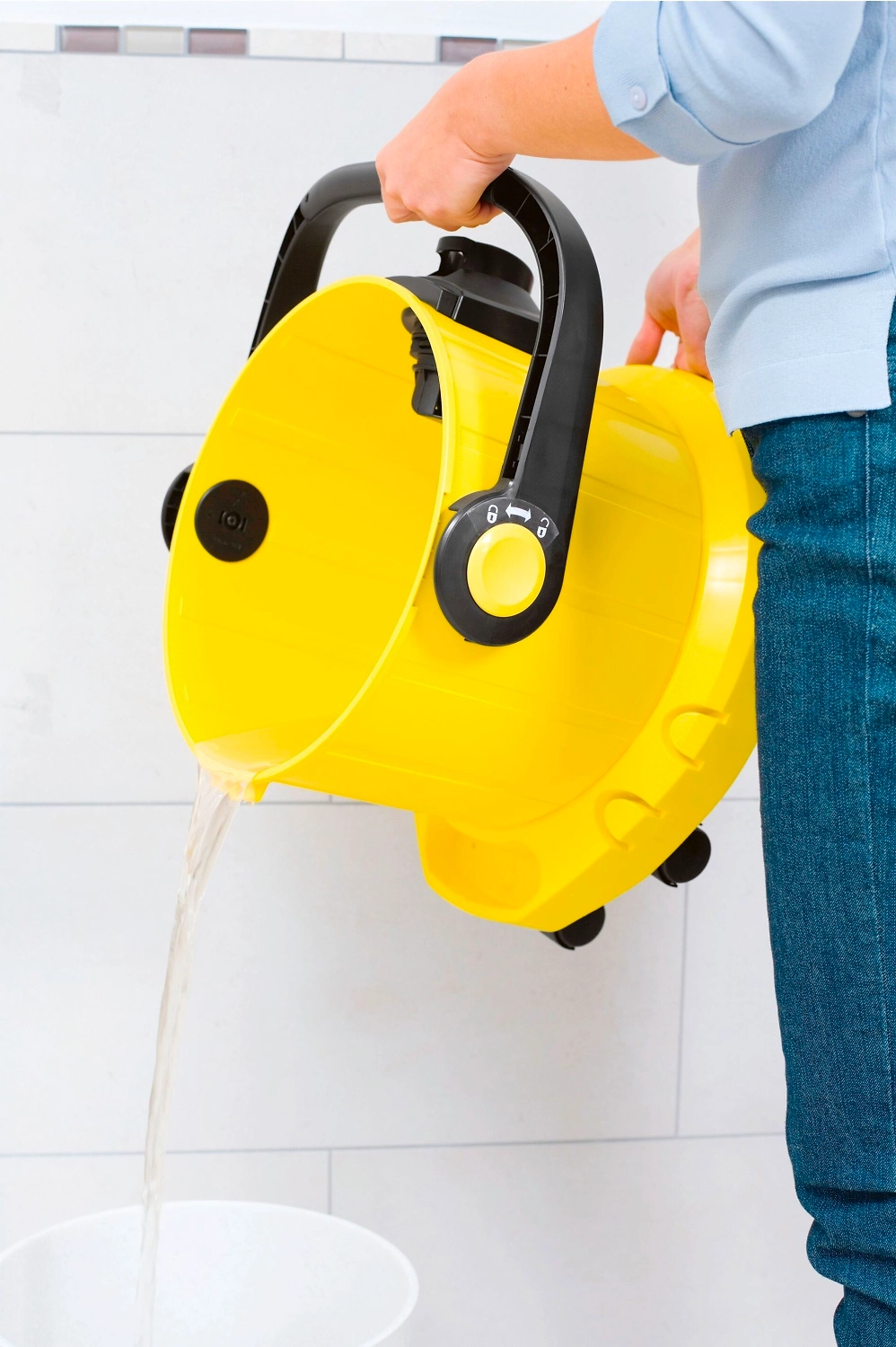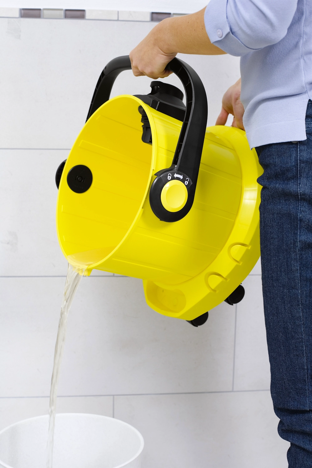 - Эргономичная ручка облегчает транспортировку и опорожнение резервуара, а также плотно фиксирует крышку бака в закрытом положении.