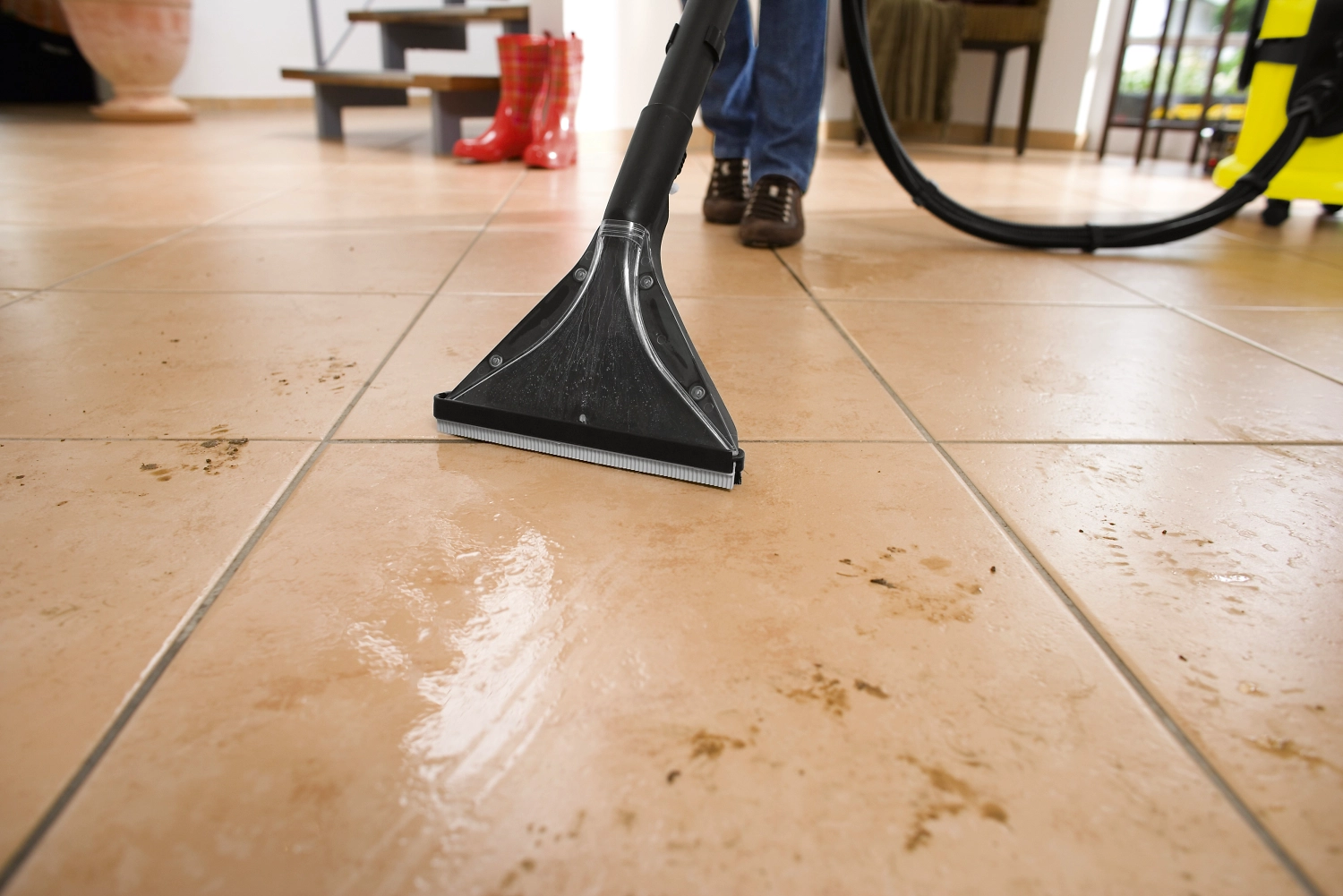 - Моющая жидкость подается под давлением, не оставляет следов после всасывания.