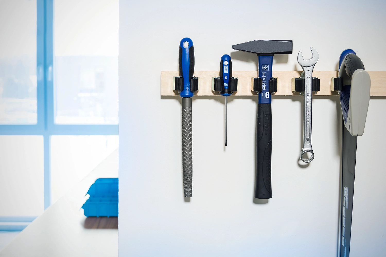 Комплект из 5 предметов оптимально подходит для крепления различных инструментов с черенком. Благодаря зажимам из пластика каждый инструмент с черенком имеет свое место. В комплектацию входит крепеж (винты и дюбели).