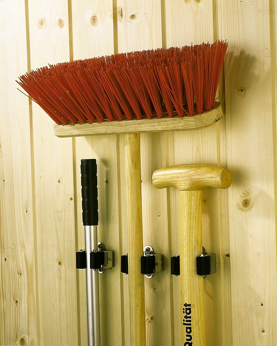 Комплект из 5 предметов оптимально подходит для крепления различных инструментов с черенком. Благодаря зажимам из пластика каждый инструмент с черенком имеет свое место.