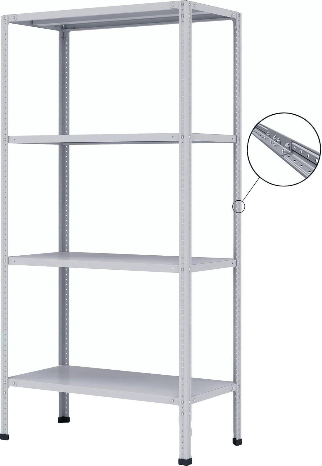 Металический стеллаж МС-500 254Р (191,5х100х50 см), 4 полки, цвет светло-серый