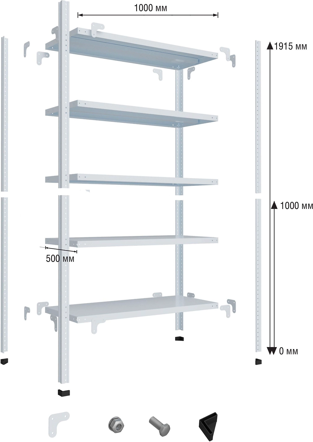 Металлические стойки и полки стеллажа МС-254/500Р изготовлены из высокопрочной стали специальной марки, имеют дополнительные ребра жесткости.