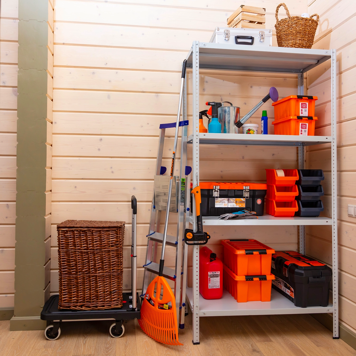 Стеллаж можно установить в кладовой, гардеробной, на балконе, дома, на даче, в гараже, мастерской, погребе, на складе, в офисе и других помещениях.