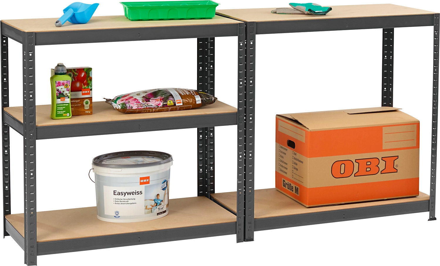 Стеллаж OBI подойдет для гаражей, домашних мастерских, погребов, складов и пр.