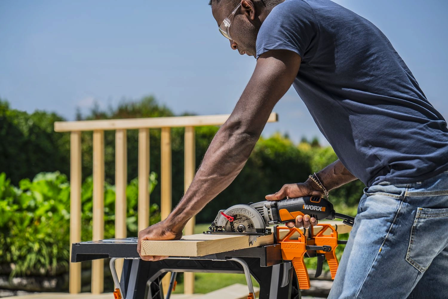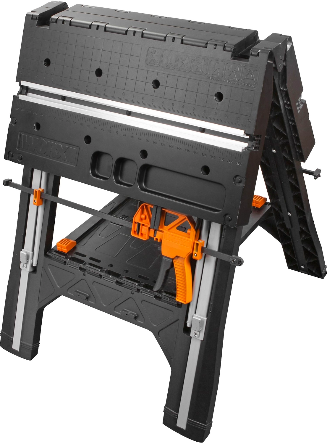 Складной рабочий стол позволяет экономить место в мастерской и требует минимум времени для сборки. Быстрые встроенные зажимы надежно фиксируют стол в разобранном положении, предотвращая раскачивание. Универсальные зажимы совместимы с другими инструментами WORX.