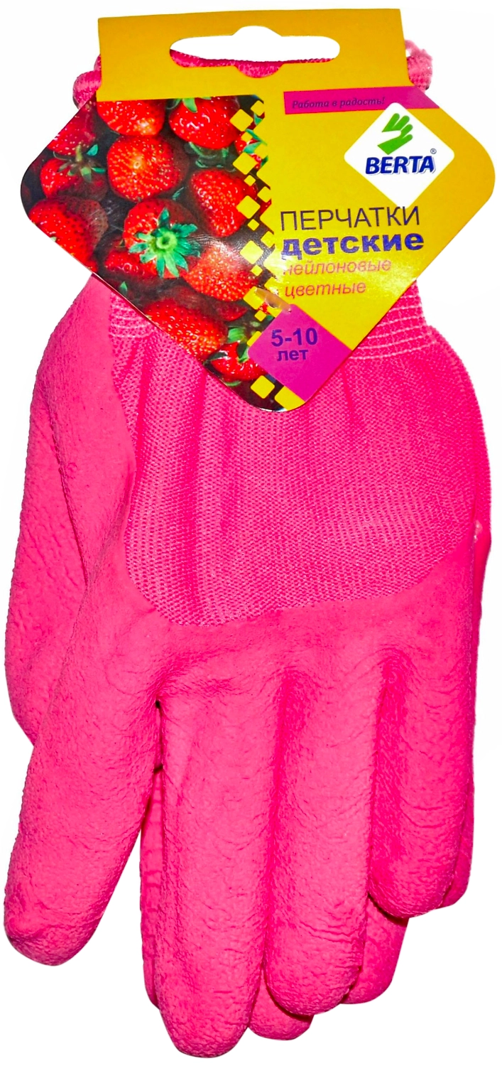 Эластичные садовые перчатки "Берта" для детей 5-10 лет изготовлены из нейлона с латексным покрытием. Современные материалы позволяют коже в перчатках "дышать". Они очень легкие и удобные, комфортно облегают руки. Перчатки с плоской текстурой изготовлены на новейшем оборудовании. Высокий класс вязки и многоступенчатый контроль качества гарантируют износостойкость и долговечность изделия.