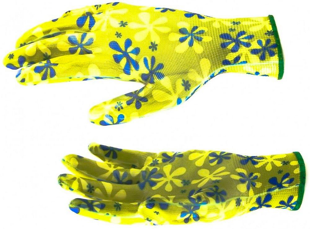 Перчатки садовые из полиэстера с нитриловым обливом М, цвет в ассортименте.