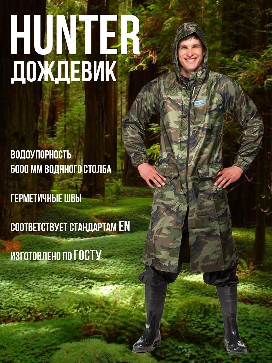Плащ влагозащитный HUNTER зеленый камуфляж 52-54/5-6 размер