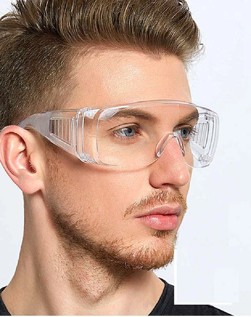Очки ударопрочные применяются при слесарных, столярных, строительных работах, в медицине, при стрижке деревьев и резке металла. Очки можно надевать на корригирующие очки.