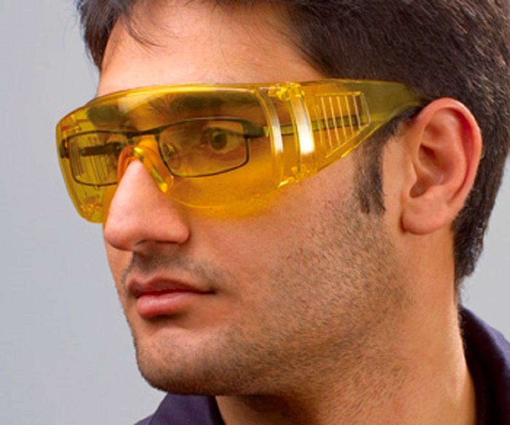 Очки ударопрочные применяются при слесарных, столярных, строительных работах, в медицине, при стрижке деревьев и резке металла. Очки можно надевать на корригирующие очки. Рекомендованы к применению при выполнении работ на станках и устройствах для механической обработки твердых материалов, слесарных работах, а также при разнообразных видах работ, связанных с возможной угрозой получения травм глаз (раскалывании, дроблении, рубке и т. д.) Желтые линзы избирательно отфильтровывают синий свет в видимом спектре, повышая контраст. Рекомендованы для использования в условиях плохой видимости (туман, дождь, снег, сумерки).