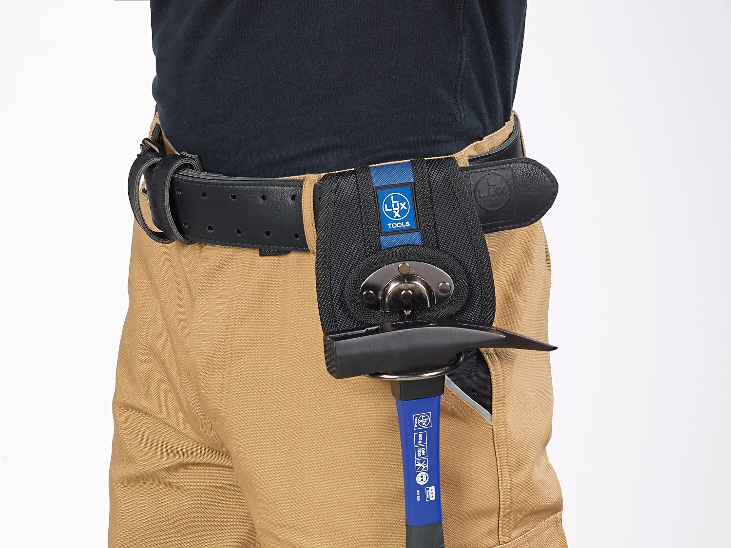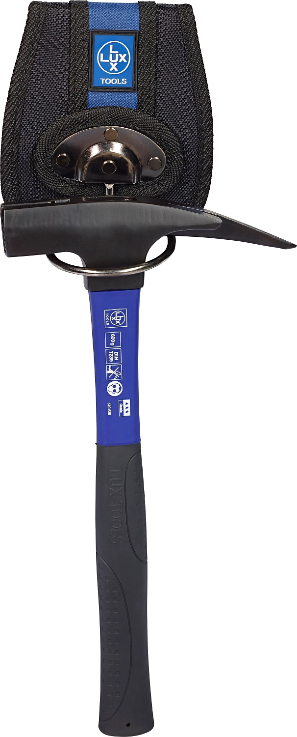 Прочный универсальный держатель для инструмента LUX-TOOLS из нейлоновой ткани крепится к обычному ремню, используется для удобной фиксации молотка.