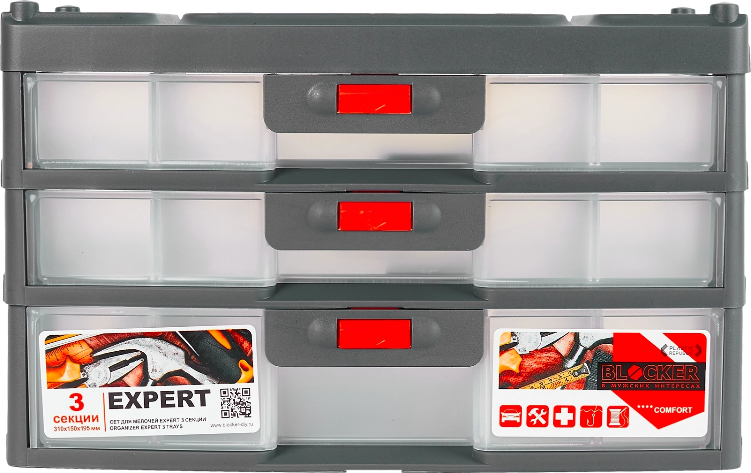 Сет для мелочей Blocker Expert 3 секции серо-свинцовый/оранжевый 31х15х19,5 см