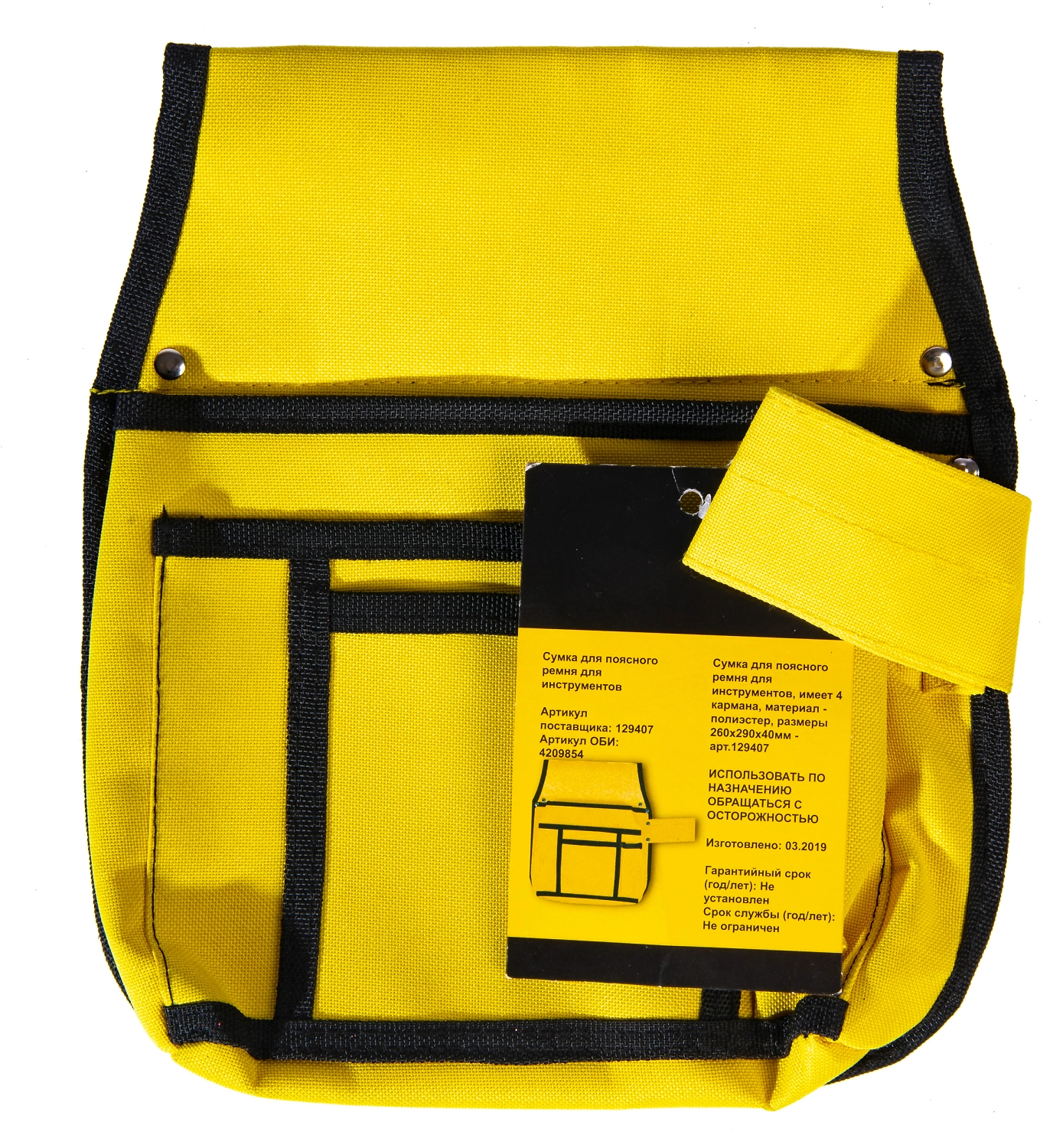 Сумка для поясного ремня для инструментов, имеет 4 кармана, материал - полиэстер, размеры 260х290х40 мм.