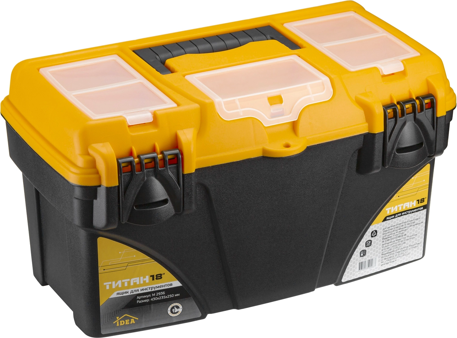 Ящик для инструментов с вкладышем и замками изготовлен из прочного безопасного пластика.
