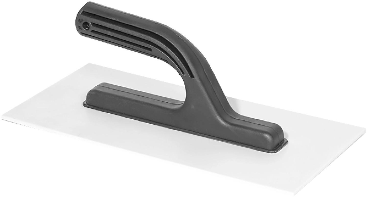 Гладилка прямая 140х280 мм пластиковая с пластмассовой ручкой cостоит из прочной пластиковой рабочей части толщиной 3 мм, а также удобной пластиковой ручки, которая хорошо лежит в руке во время