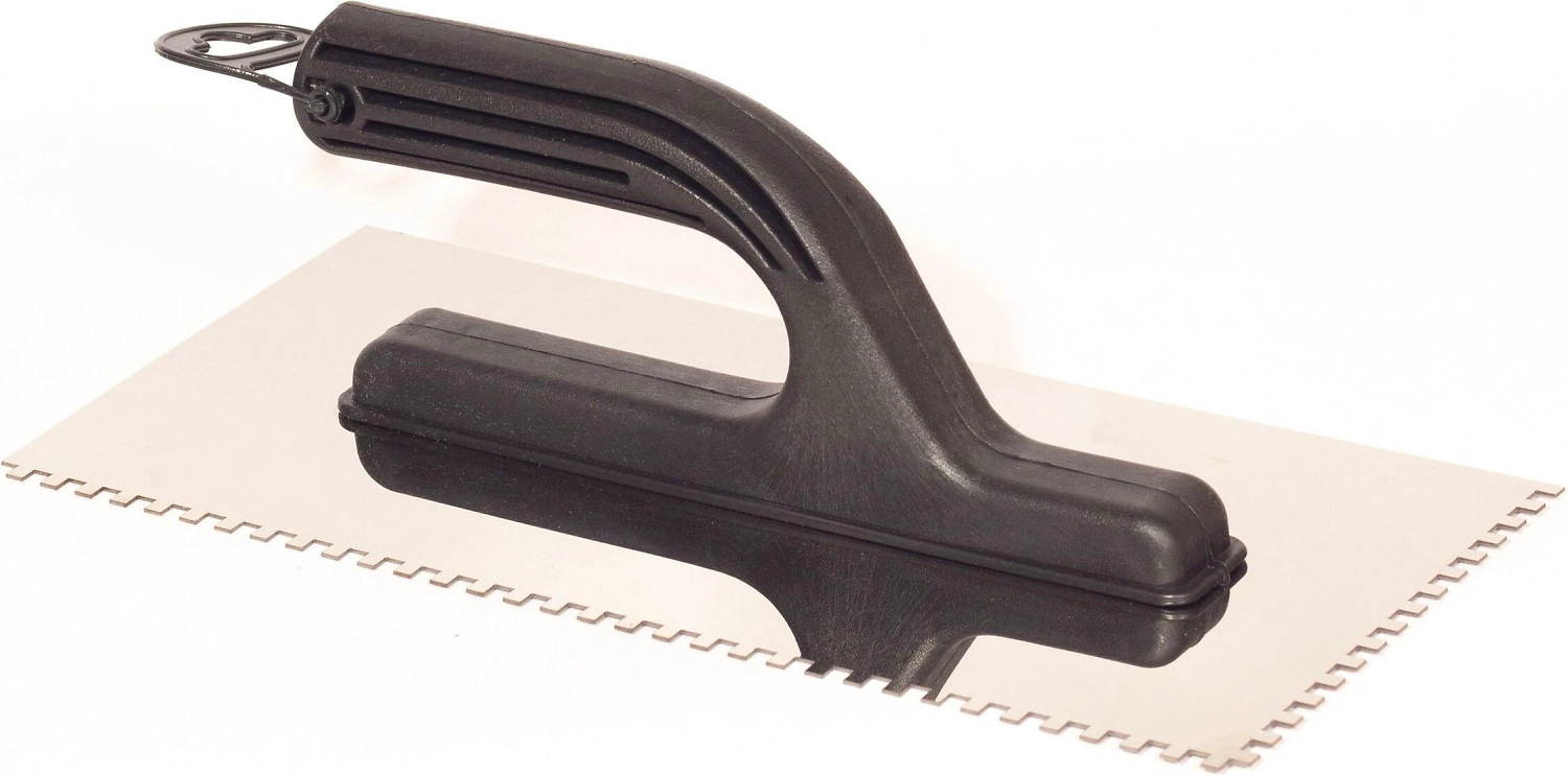 Гладилка прямая (зубчатая) – изготовлена из нержавеющей стали, оснащена эргономичной пластиковой ручкой.