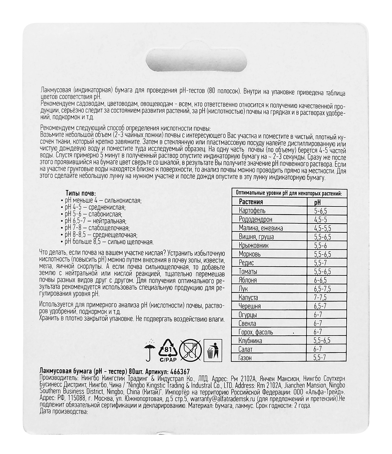 • Наименование товара Лакмусовая бумага GARDEN SHOW (pH - тестер) 80 шт