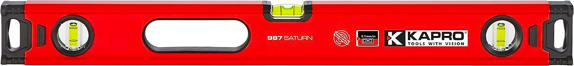 Уровень KAPRO SATURN 987 выполнен из прочных материалов и максимально точно производит замер. Погрешность составляет до 0,5 мм на метр. Длина шкалы 100 см оптимальна для домашних работ.