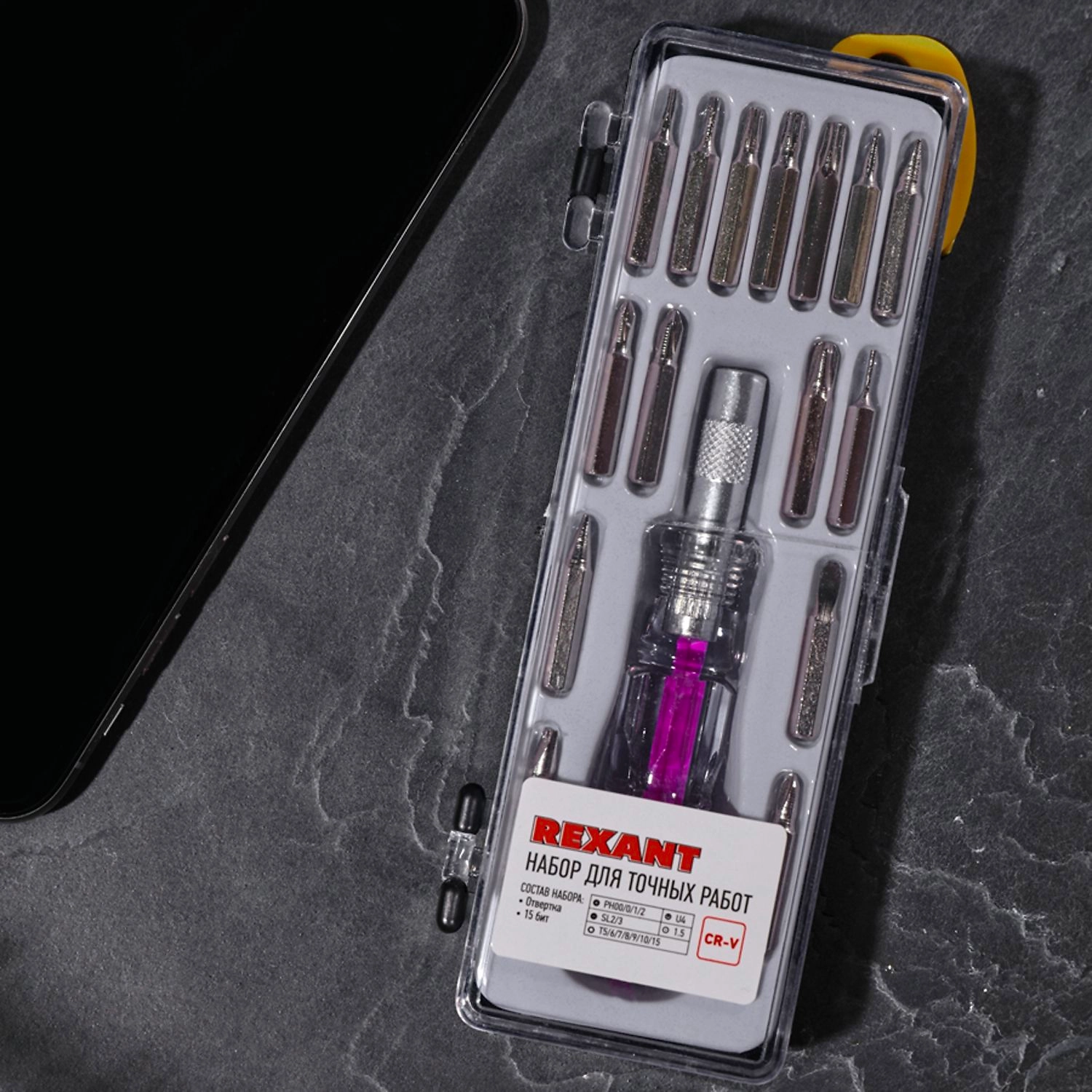 Набор отверток для точных работ арт. 12-4704 REXANT 16 предметов предназначен для выполнения прецизионных работ в электронике и электромеханике.