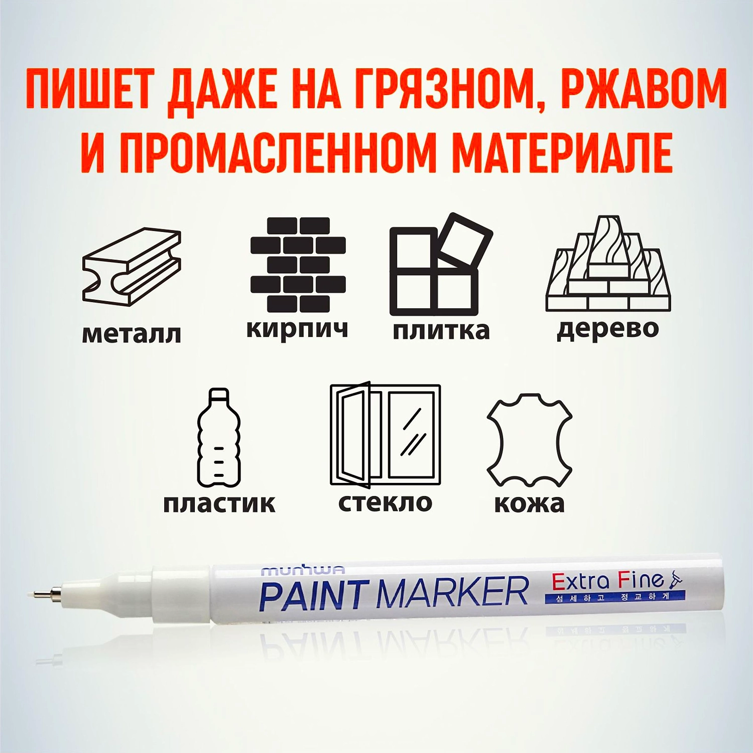 Маркер-краска (лаковый маркер) MunHwa "Extra Fine Paint Marker" - профессиональный лаковый маркер на нитрооснове. Цвет чернил - белый, диаметр пишущего узла - 1 мм.