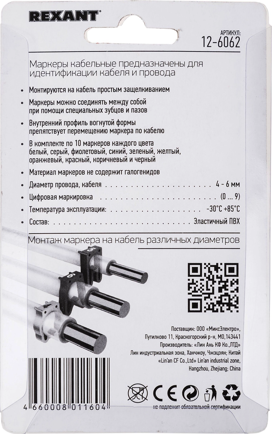 Маркеры самоклеящиеся REXANT MR-55 4-6 мм, 10 цветов, блистер