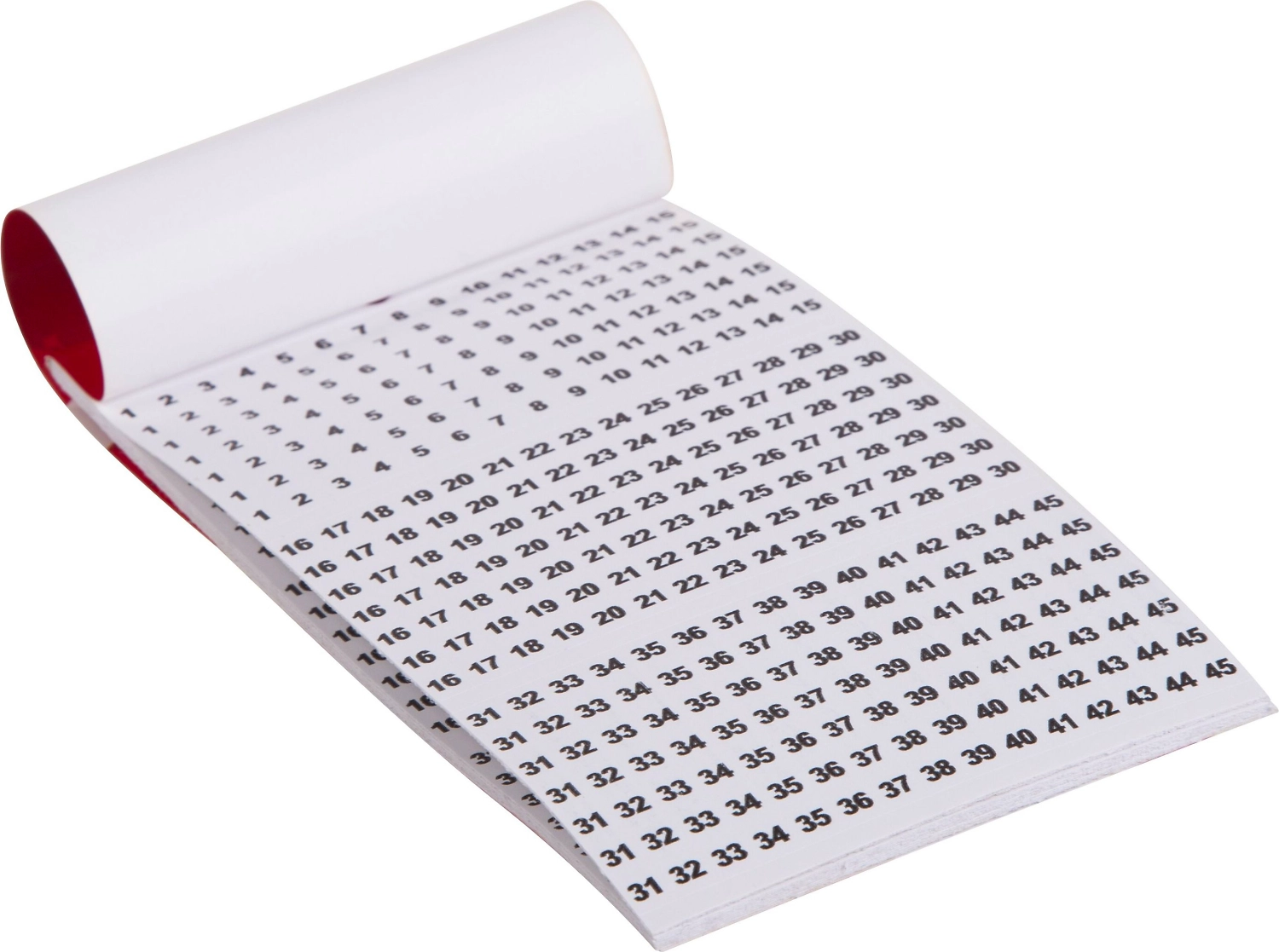 - Маркировка: на каждой странице цифры от 1 до 45, 45 наклеек по порядку, всего 10 страниц, всего 450 наклеек.