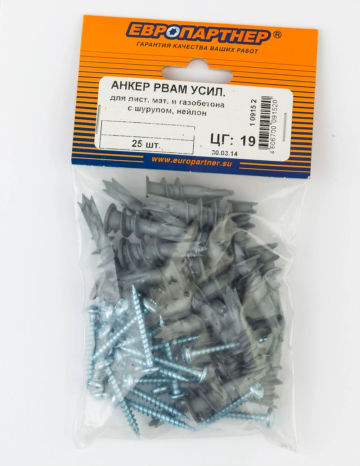 Анкер для гипсокартона с шурупом ЕВРОПАРТНЕР PBAM 10х39 мм УСИЛЕННЫЙ 25 шт.