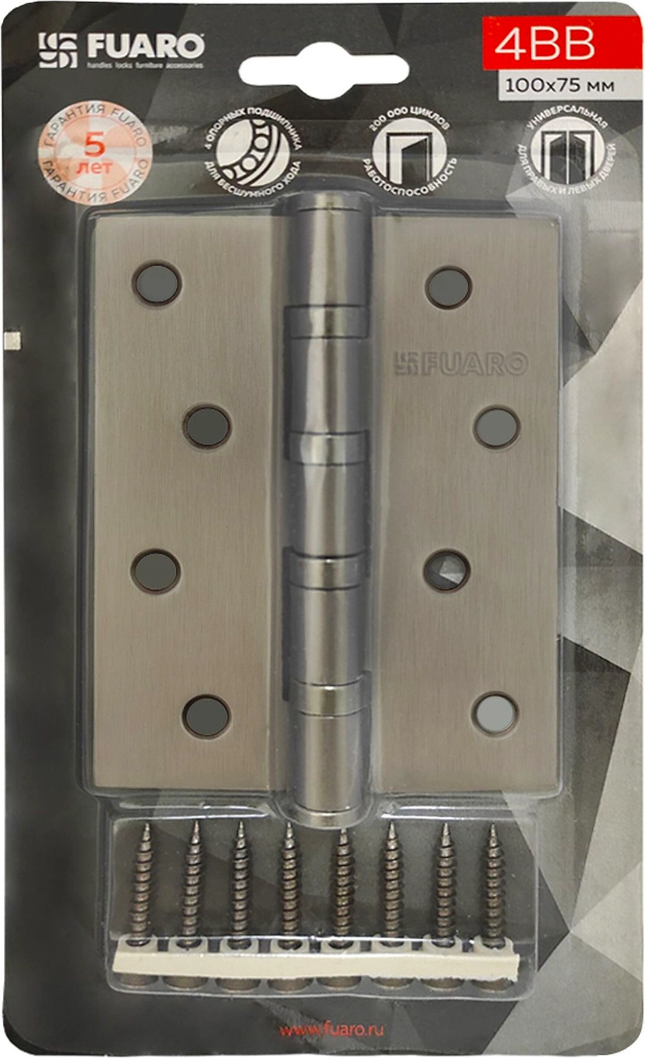 Универсальная дверная петля Fuaro 4BB/BL изготовлена из стали, подходит для дверей правого и левого открывания.