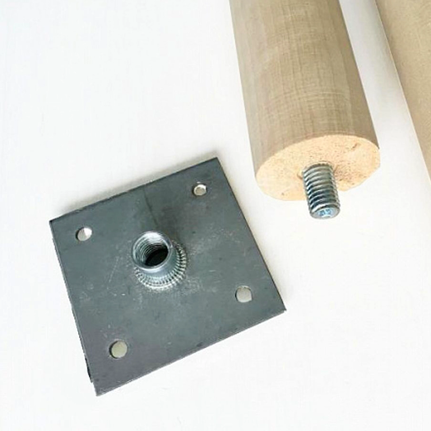 - Конструкция представляет собой пластину, которая имеет четыре монтажных отверстия и гайку с внутренней метрической резьбой