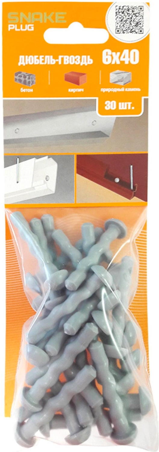 Дюбель-гвоздь полипропилен усиленный ЕВРОПАРТНЕР SNAKE SG 6x40 мм 30 шт