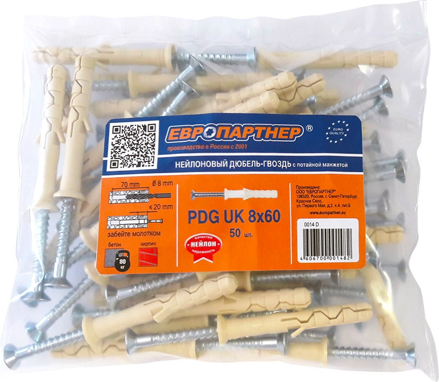 Дюбель-гвоздь ЕВРОПАРТНЕР PDG предназначен для легких креплений в твердых основаниях (бетон, кирпич или натуральный камень). Дюбель-гвоздь ЕВРОПАРТНЕР позволяет осуществлять быстрый, сквозной монтаж. Просто просверлите отверстие через прикрепляемый материал, забейте гвоздь молотком и крепление готово. Шлиц на шляпке служит исключительно целям демонтажа гвоздя выкручиванием.
