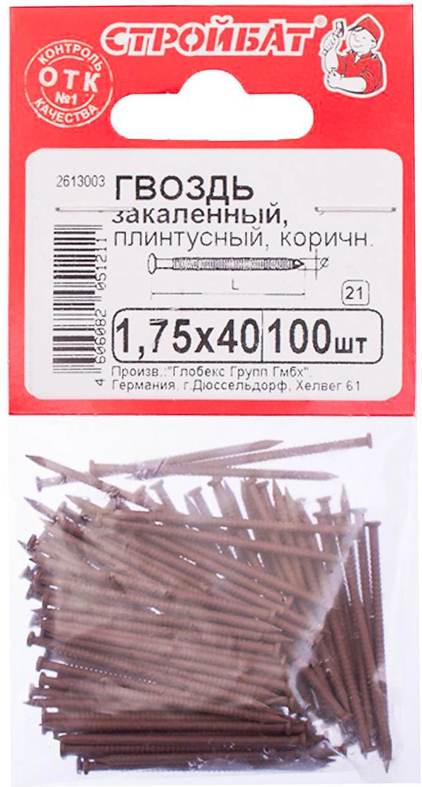Гвоздь плинтусный Стройбат 1,75х40 мм 10 шт 10 г коричневый
