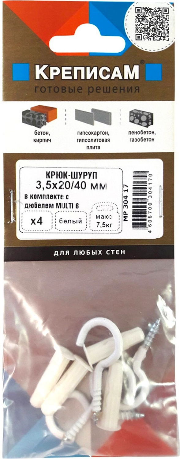 Дюбель ЕВРОПАРТНЕР MULTI Plug 6x25 мм с крюк-шурупом 3,5x20 мм 4 шт