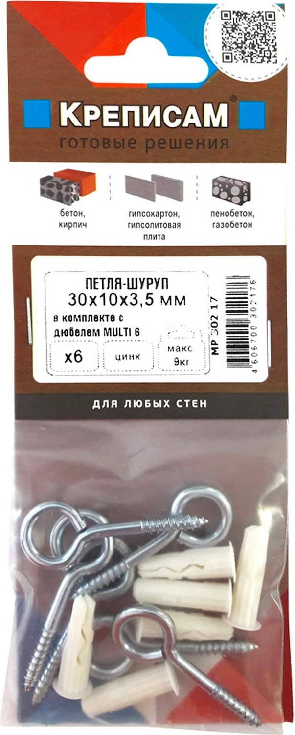 Дюбель ЕВРОПАРТНЕР MULTI Plug 6x25 мм с петля-шурупом 3,5x30 мм 6 шт