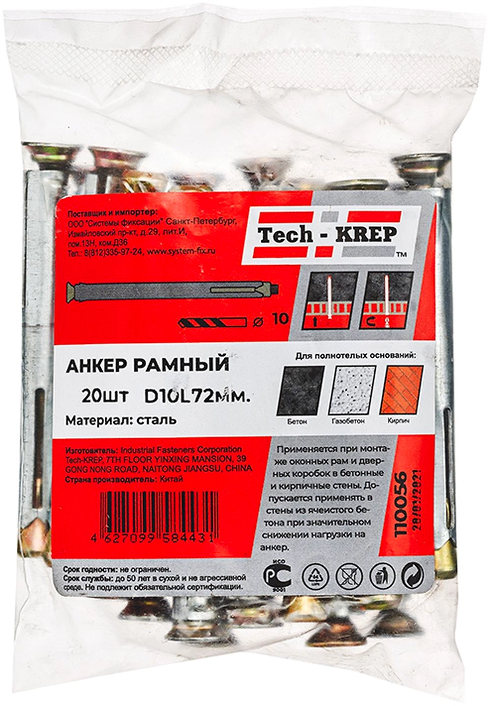 Дюбель рамный Tech-KREP 10х72 мм 20 шт