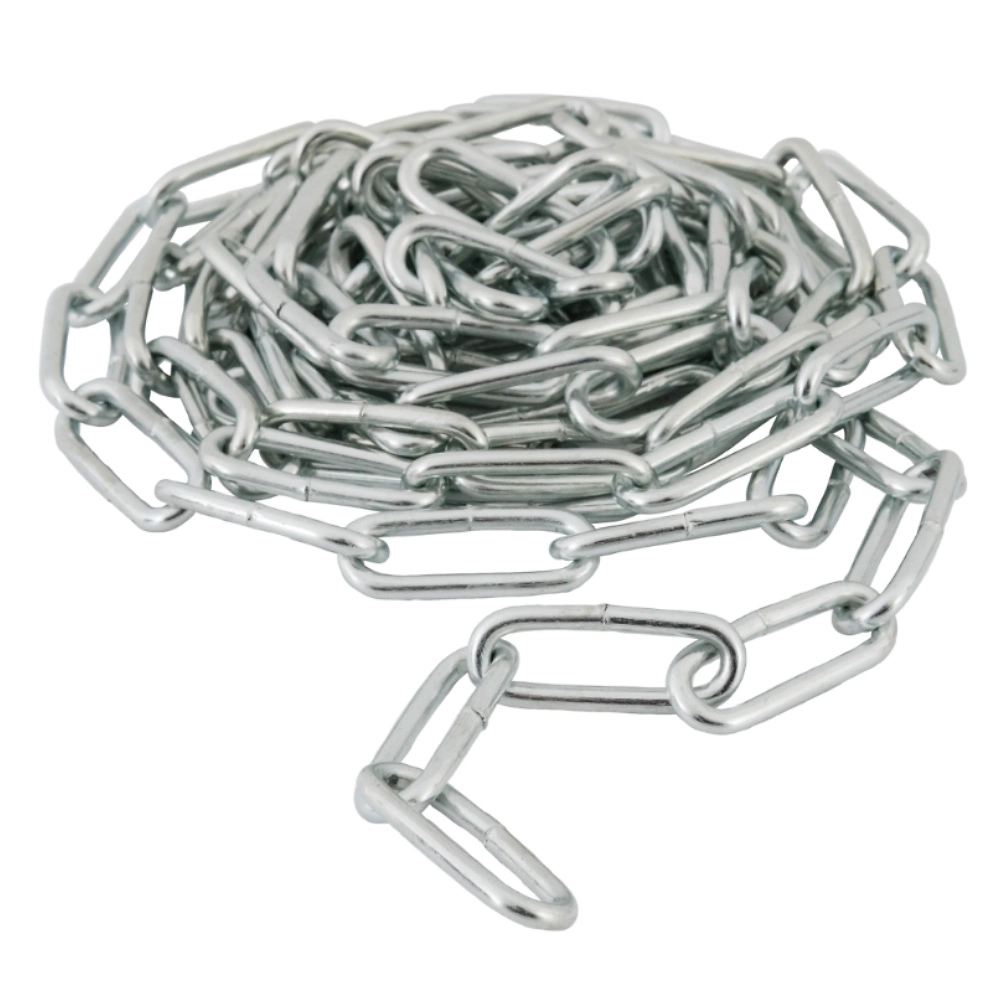 Используется для растяжек и декораций, фиксации груза при транспортировке, подвешивания нетяжёлых элементов оборудования. Устойчива к влажности и перепадам температуры. Звенья удлинённые. Изготовлена из оцинкованной стали; Удлинённое звено; Диаметр сечения 4; Допустимая нагрузка: 1 kH; Разрушающая нагрузка: 6 kH