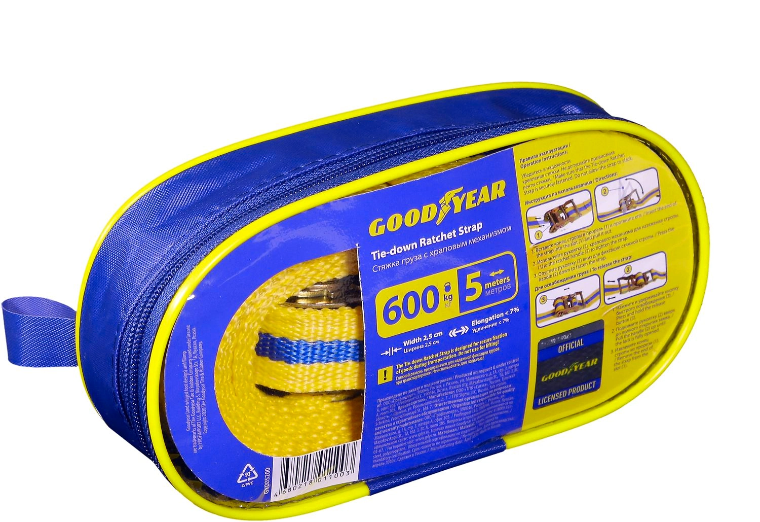Стяжка груза 5 м с храповым механизмом Goodyear 600 кг