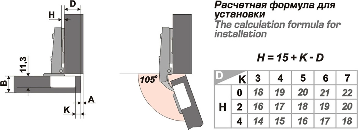 Для накладной двери, угол открывания 105, система соединения с монтажной планкой Slide-on.