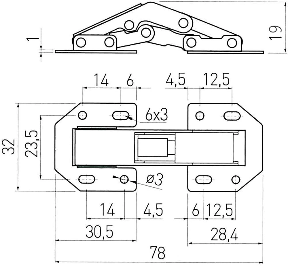 Петля с саморезом для простых мебельных проектов, сделанных своими руками, или для всех областей применения, где невозможно сверление чашки.