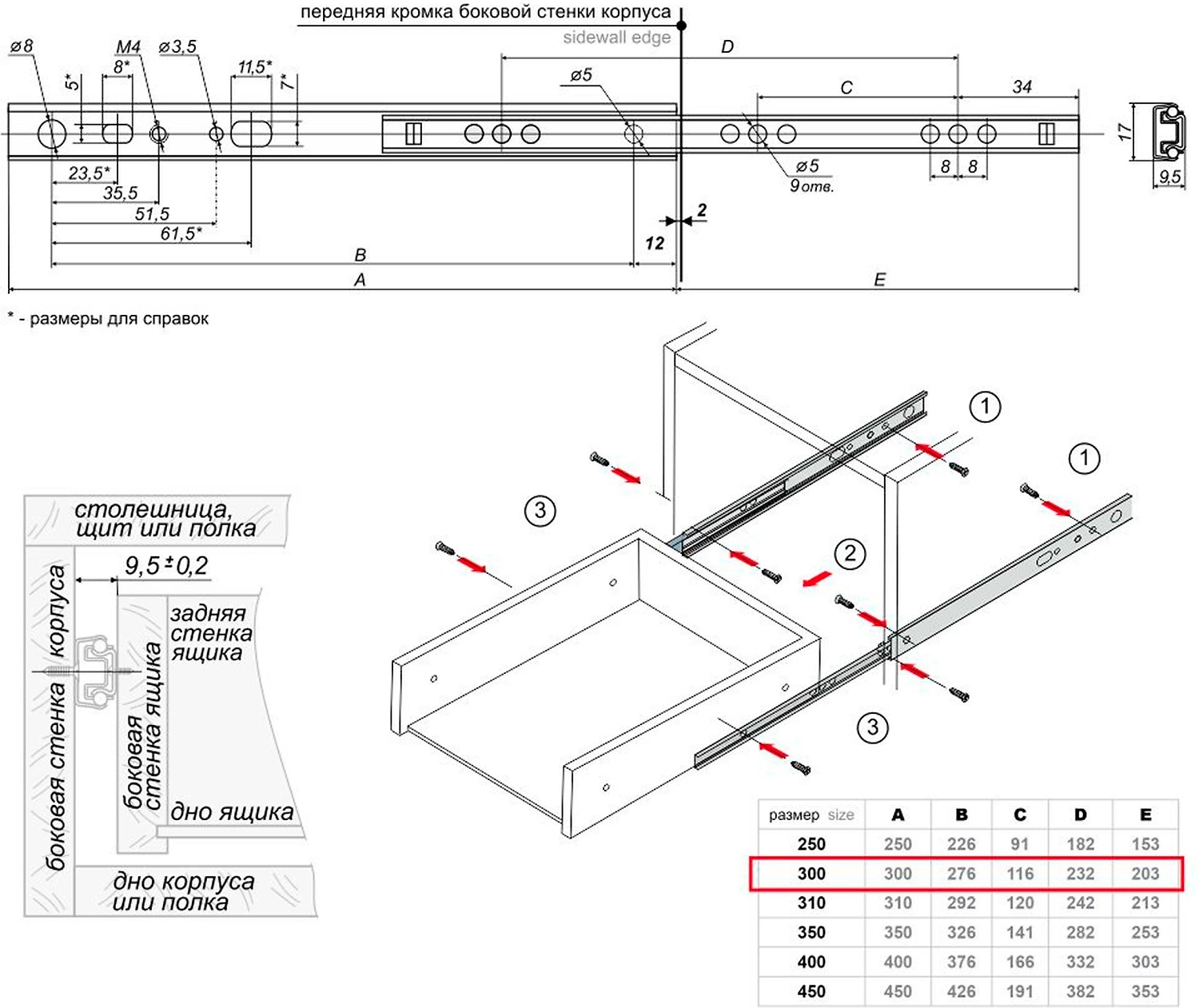 Двухсекционная, неполного выдвижения, монтажная длина 300 мм