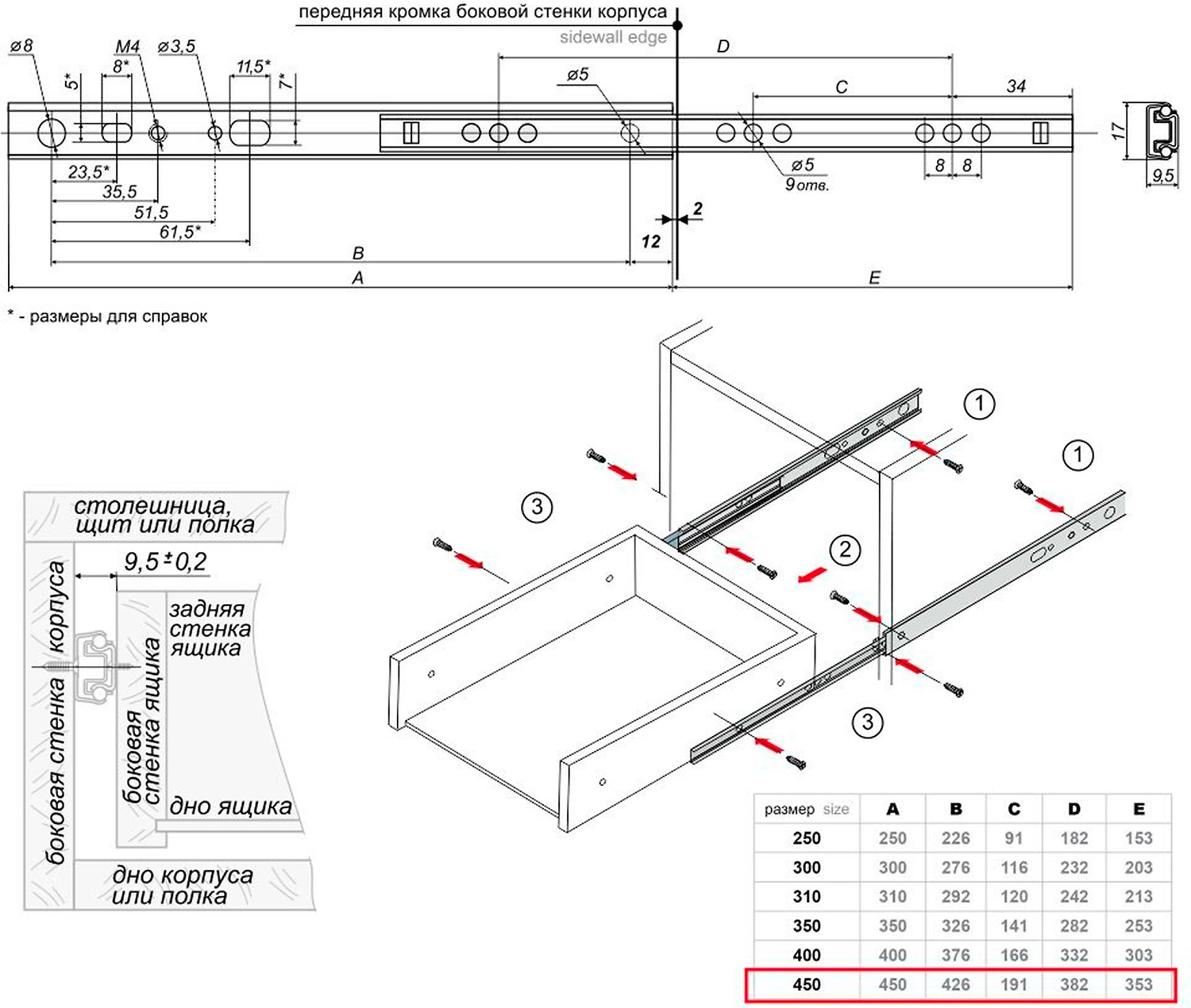 Двухсекционная, неполного выдвижения, монтажная длина 450 мм