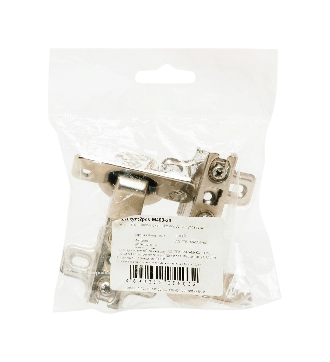 Петля четырехшарнирная slide-on, 30 градусов, никель.