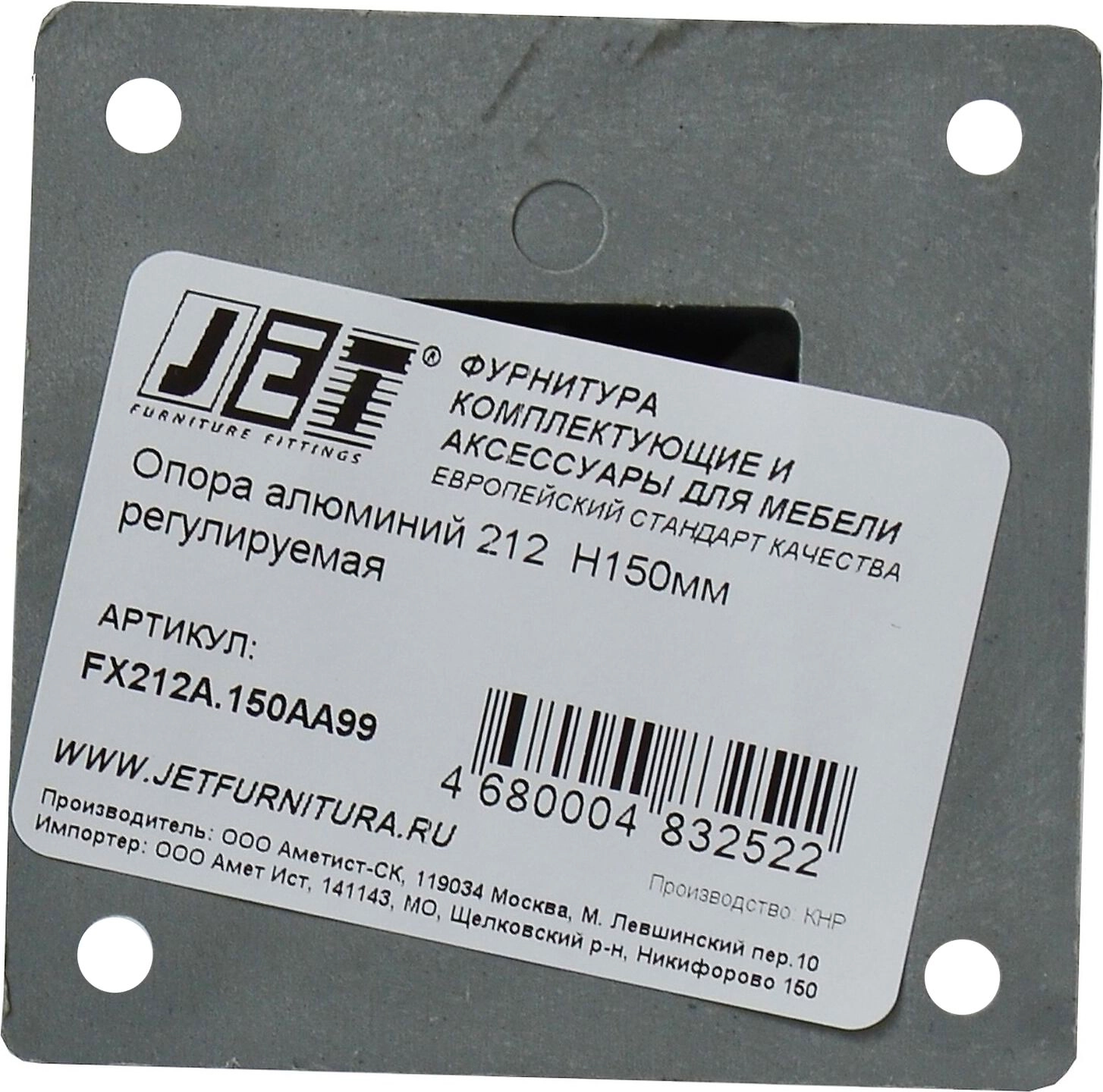 Мебельная ножка JET регулируемая алюминиевая 150 мм