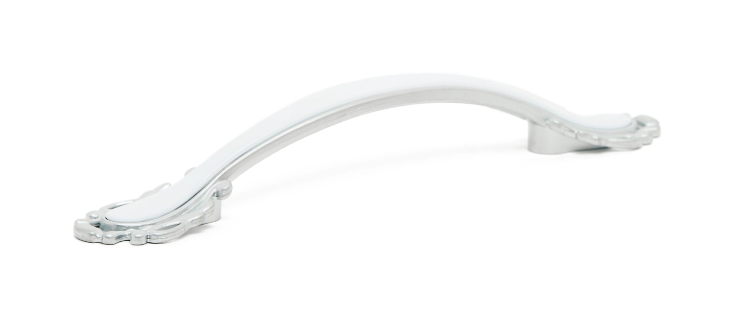 Элегантные ручки в гармоничном сочетании белого и матового хрома, идеально впишутся в классические и неоклассические интерьеры. Благодаря изящной ажурной отделке, фурнитура станет выразительной деталью, подчеркивающей достоинства мебельного гарнитура.