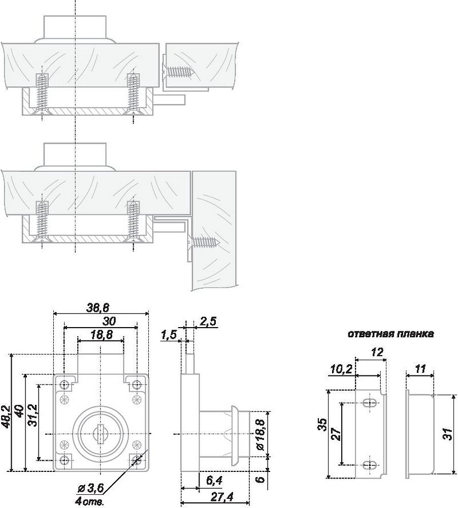 Врезной замок для мебельных ящиков из ЛДСП.