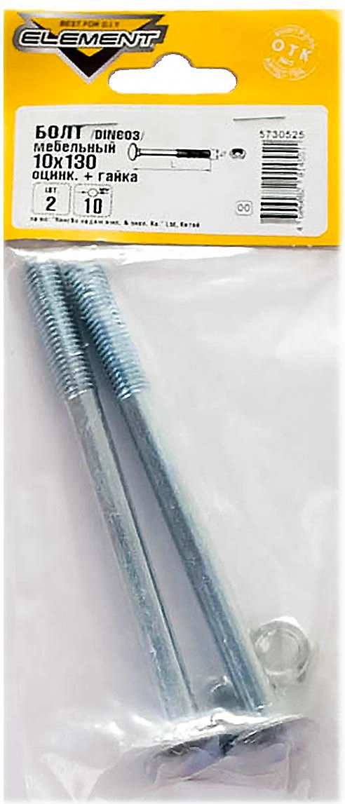 Болт DIN 603 Element полукруглый M10х130 с гайкой 2 шт